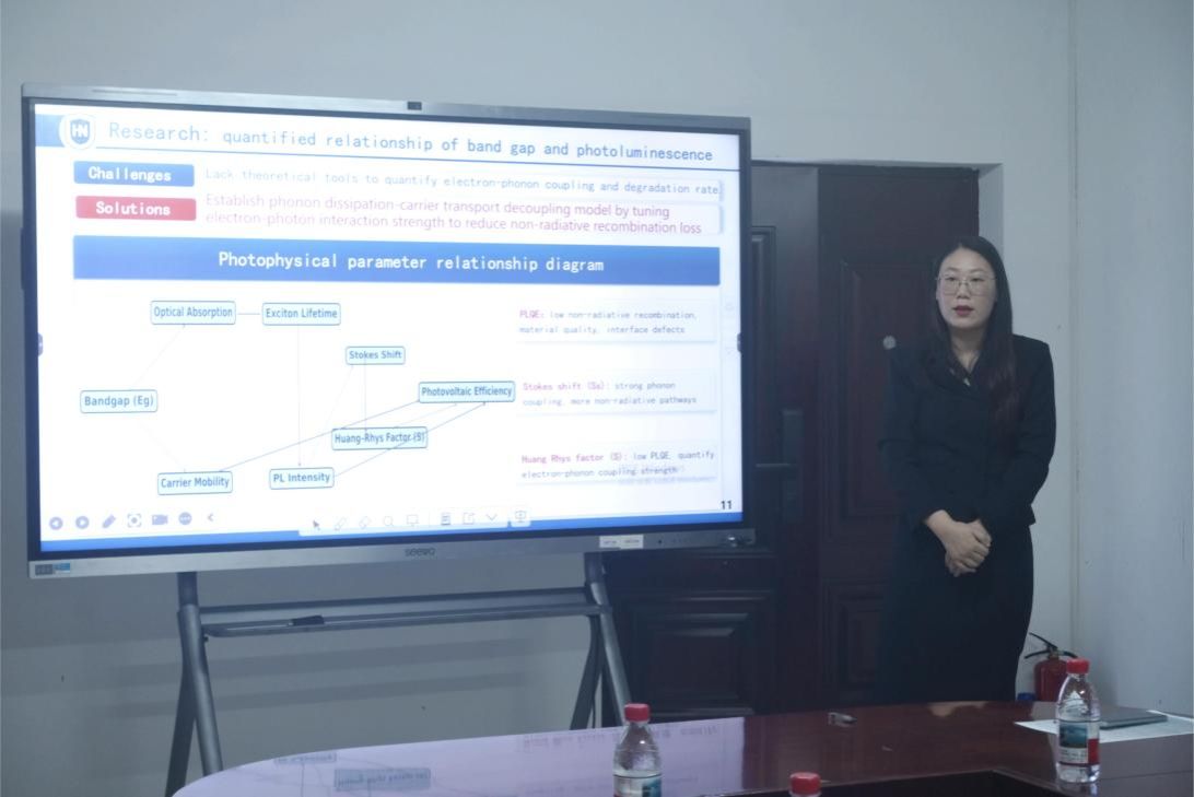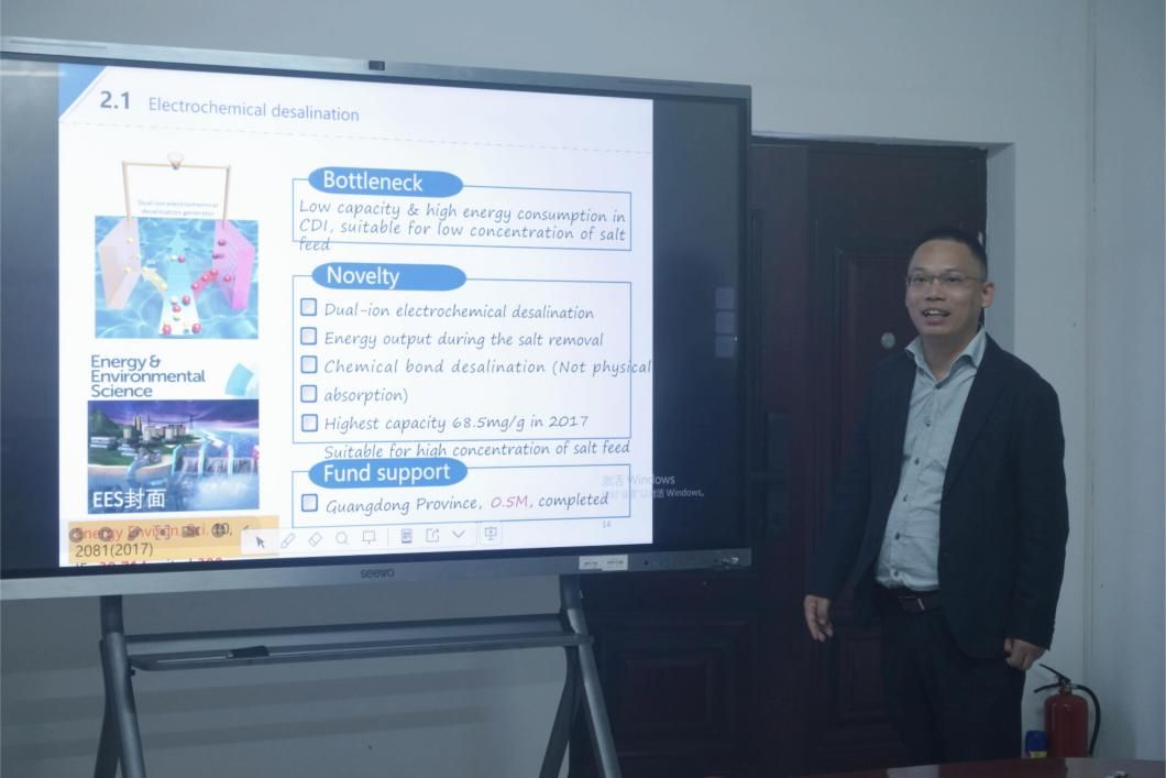 我院孙萍萍、汤泽远、陈福明三位教师分别以《The creation of high-performance metal halide perovskite materials》《Machine learning interatomic potential and its application in molecular simulations》《Electrochemical Desalination》为题对自己的科研工作进行详细汇报。