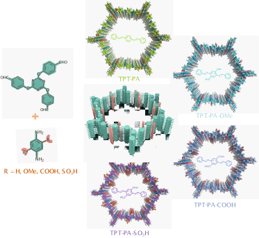 研究发现,基于双活性N、O位点的强给电子效应,以及羧酸/磺酸基团的抗质子化特性,两种新型COFs材料(TPT-PA-COOH与TPT-PA-SO3H)在钍离子(Th(IV))吸附分离方面展现出超高的饱和吸附容量、优异的Th(IV)选择性以及良好的耐酸性能。通过XPS、EXAFS及DFT计算等手段,研究进一步揭示高亲和性的亚胺N位点与–COOH/–SO3H中的O位点协同作用,通过Th–N和Th–O选择性配位机制,实现了对钍的高效特异性吸附。该研究不仅为COFs材料在放射性废水处理中的实际应用提供了可行的概念框架,也为设计高性能钍吸附剂奠定了重要理论基础。